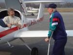 Redaksjonen gratulerer Erik Østerud med første solotur på motorfly. Erik, som gjerne lærer folk å fly opp ned i seilfly, fikk sin første solotur i DFL på Notodden lørdag. Det har ikke lykkes redaksjonen å bringe på det rene om skolesjefens bruk av krykker skyldes elevens iver eller flykunnskaper.